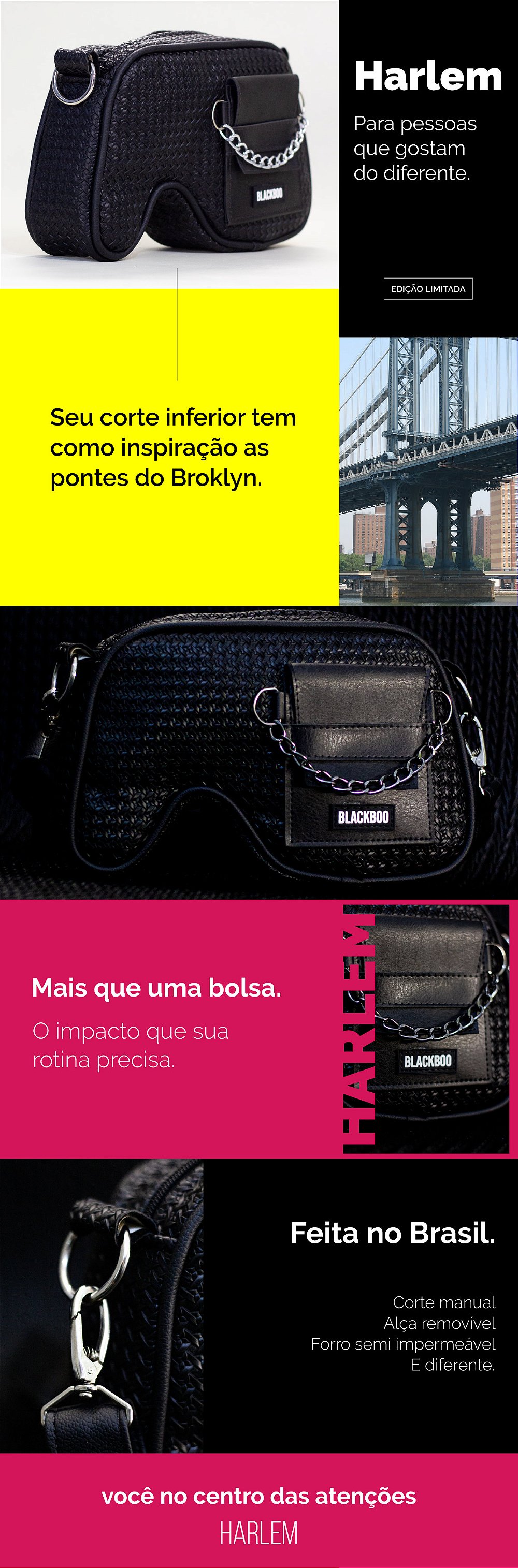 A Bolsa Harlem é o nosso fenômeno! Pensada para fugir do comum. Ideal para quem busca elegância e funcionalidade no dia a dia. Harlem oferece espaço suficiente para carregar os itens essenciais, enquanto o formato estruturado garante um visual sempre impecável. Use-a com looks casuais "jeans", com peças mais elegantes "blazer, terno, alfaiataria", vestidos fluidos para um visual mais sofisticado. São muitas as possibilidades.